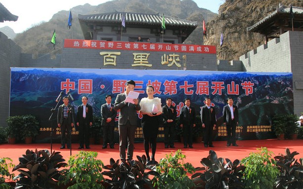 百里峡景区门口人头攒动,来自全国各地的两万多名游客和40多家媒体记者,共同见证了野三坡第七届开山节的盛大开幕式。隆重的祭山仪式后,随着野三坡老人官宏亮的开山呐喊,野三坡拉开了2014年的旅游大幕。